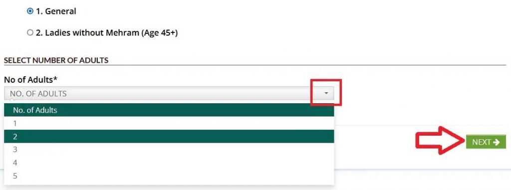 مرحلہ 4: سائن ان کریں۔ سائن ان کرنے کے بعد درج ذیل اسکرین ظاہر ہوگی۔ مناسب درخواست کے زمرے پر کلک کریں۔ ڈراپ ڈاؤن سے بالغوں کی تعداد منتخب کریں اگلا بٹن پر کلک کریں: