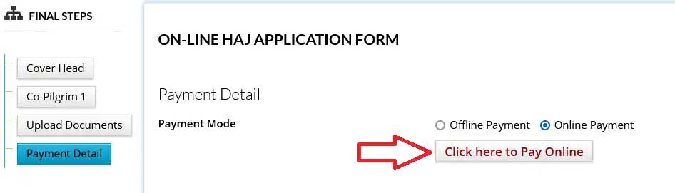 ’آن لائن ادائیگی‘کو منتخب کریں اور ’آن لائن ادائیگی کے لیے یہاں کلک کریں‘ پر کلک کریں۔