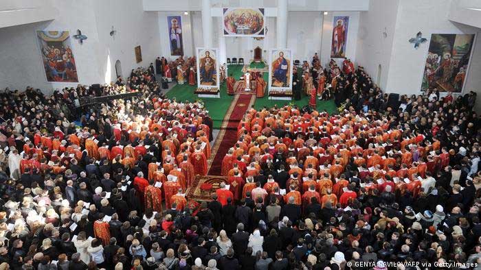 دوسری جانب قدیمی یوکرینی آرتھوڈوکس چرچ ہے، جو روسی آرتھوڈوکس چرچ کے ماتحت ضرور ہے لیکن اپنی خود مختاری بھی رکھتا ہے۔ یوکرینی آرتھوڈوکس چرچ کے سربراہ پیٹری آرک اونوفرائی آف کییف نے اپنی دعا میں کہا،’’اے خدا! غلط فہمیوں کو دور کر، ہمارے ملک کو متحد کر اور محبت سے نواز۔‘‘