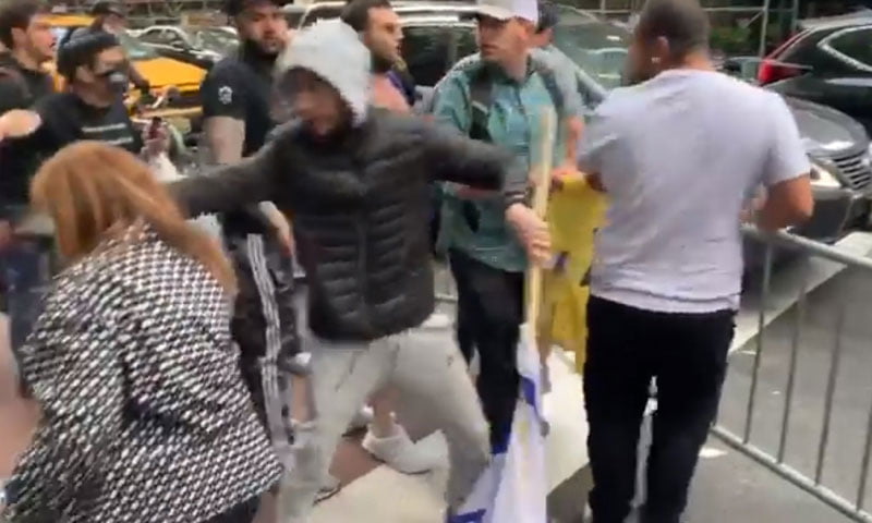 اسی دوران اسرائیل کا حامی گروہ بھی قونصل خانے کے سامنے آپہنچا۔ دونوں گروہ نے ایک دوسرے کے خلاف نعرے بازی کی۔
