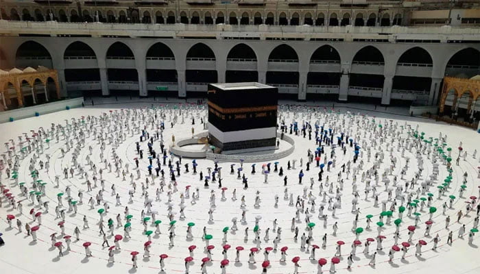سماجی فاصلے کو یقینی بنانے کے لیے اور سیکورٹی کی بھاری نفری کی موجودگی کے پیش نظر معتمرین اور نمازیوں کے راستے متعین کر دیے گئے ہیں۔